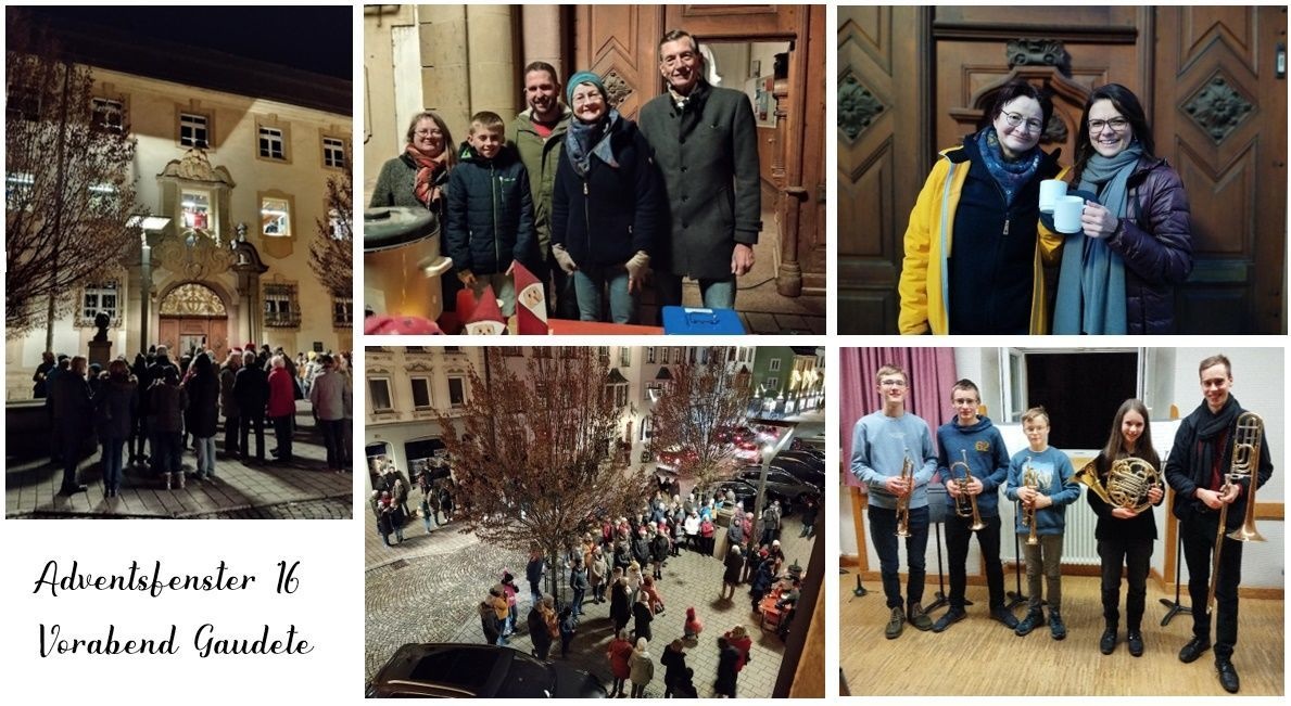 Ein zumindest teilweise in dieser Funktion erfahrenes kleines Schülerblasorchester (siehe „Backstagefoto“ Bildcollage) spielten stimmungsvoll Adventslieder. Beim Orchester wirkten mit (Bild von links nach rechts): Jakob Fetscher (Trompete), Serafin Lienhart (Trompete), Philipp Fetscher (Trompete), Maria Lienhart (Horn) und Michael Lienhart (Posaune).