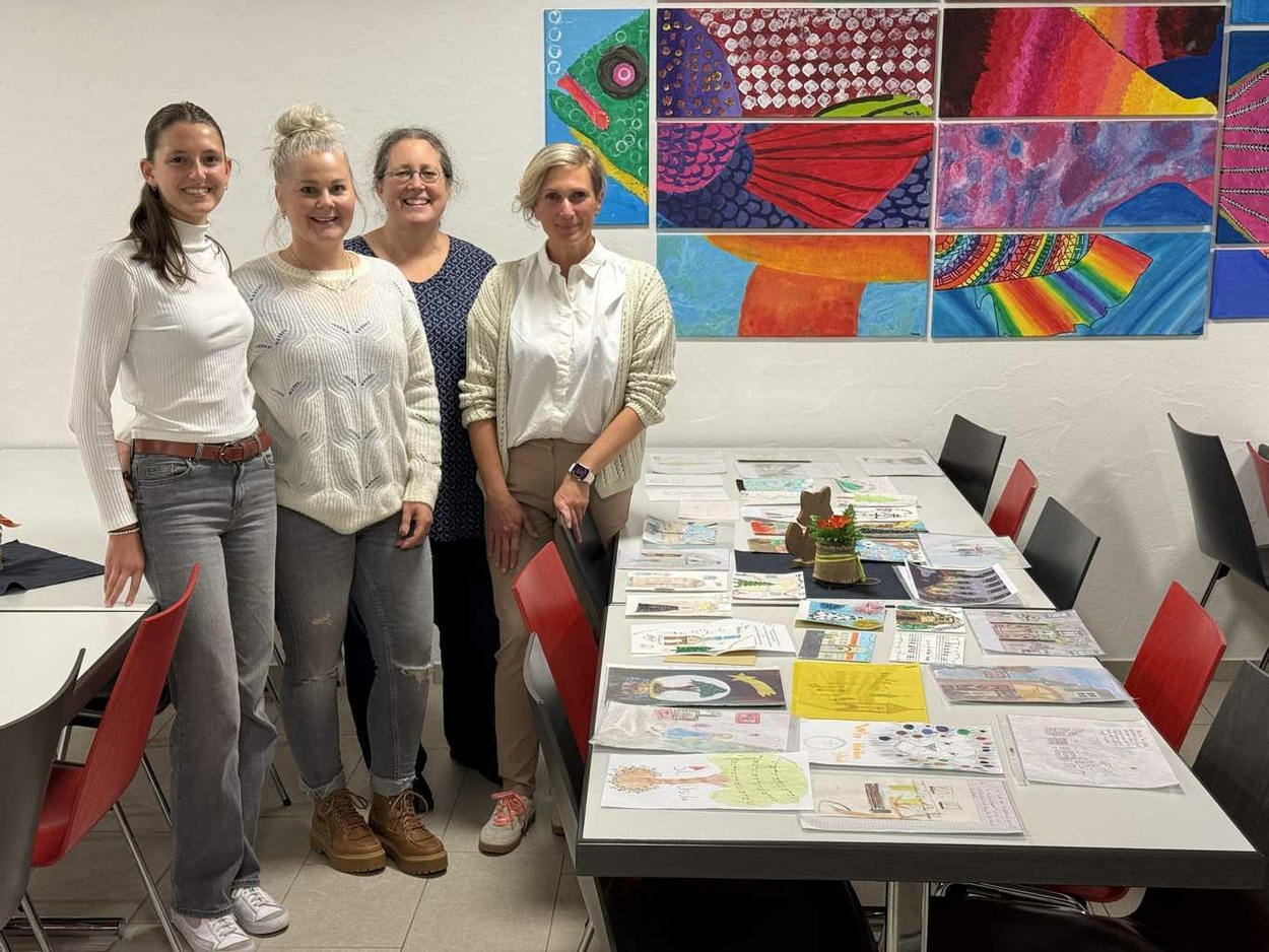 In diesem Jahr hatte der Förderverein erstmalig einen Malwettbewerb zur Gestaltung der diesjährigen Weihnachtskarte des Fördervereins an die fünfhundert Mitglieder ausgelobt. Fast vierzig kreative Beiträge gingen ein – ein tolles Zeichen für das große Engagement und die Fantasie unserer Schülerinnen und Schüler. Die Jury – bestehend aus Luisa Schuhmacher (9b, im Bild links), Frau Stefanie Hirt (1. Vorsitzende des Fördervereins, rechts), Frau Elis Hirt und Frau Kelly (Konrektorin der Realschule) – hatte die sprichwörtliche Qual der Wahl. Viele der Einsendungen überzeugten mit originellen Ideen, liebevollen Details und künstlerischem Talent.