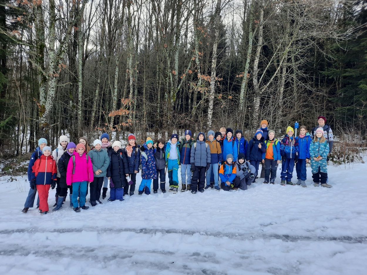 Am 15. Januar 2026 unternahm die Klasse 5Gb in Begleitung von Frau Heinichen und Frau Kutt einen Ausflug in den Wald. Um 9:20 Uhr gingen wir zu unserem Treffpunkt an der Warenbergschule. Dort erwartete uns Frau Olfert, eine Biologin von der Waldakademie. Oben angekommen ging es auch gleich los. Zuerst spielten wir ein Spiel, bei dem es um die verschiedenen Überwinterungs-Strategien der Tiere ging. Danach marschierten wir auch schon in den Wald hinein. Wir haben besprochen, welche Überwinterungsarten es gibt und von welchen Tieren sie eingesetzt werden. Danach teilten wir uns in Gruppen ein, um ein Igelnest zu bauen. Um aber auch wirklich festzustellen, welches Nest am meisten Wärme isoliert, machten wir ein Experiment. Wir bekamen ein Glas mit warmem Wasser und ließen es für 15 Minuten in unseren Nestern. Wer am Ende das wärmste Glas hatte, sollte gewinnen. Während wir warteten, bekam jeder eine Karte mit einem Tier und wir mussten die Tiere ihrer Überwinterungsstrategie zuordnen. Nach dem Spiel holten alle gespannt ihr Glas aus dem Nest. Drei Gruppen gewannen mit 28°C. Nun war der Ausflug auch schon vorbei und wir packten unsere Sachen zusammen. Es war ein spannender Ausflug, bei dem wir viel gelernt haben.